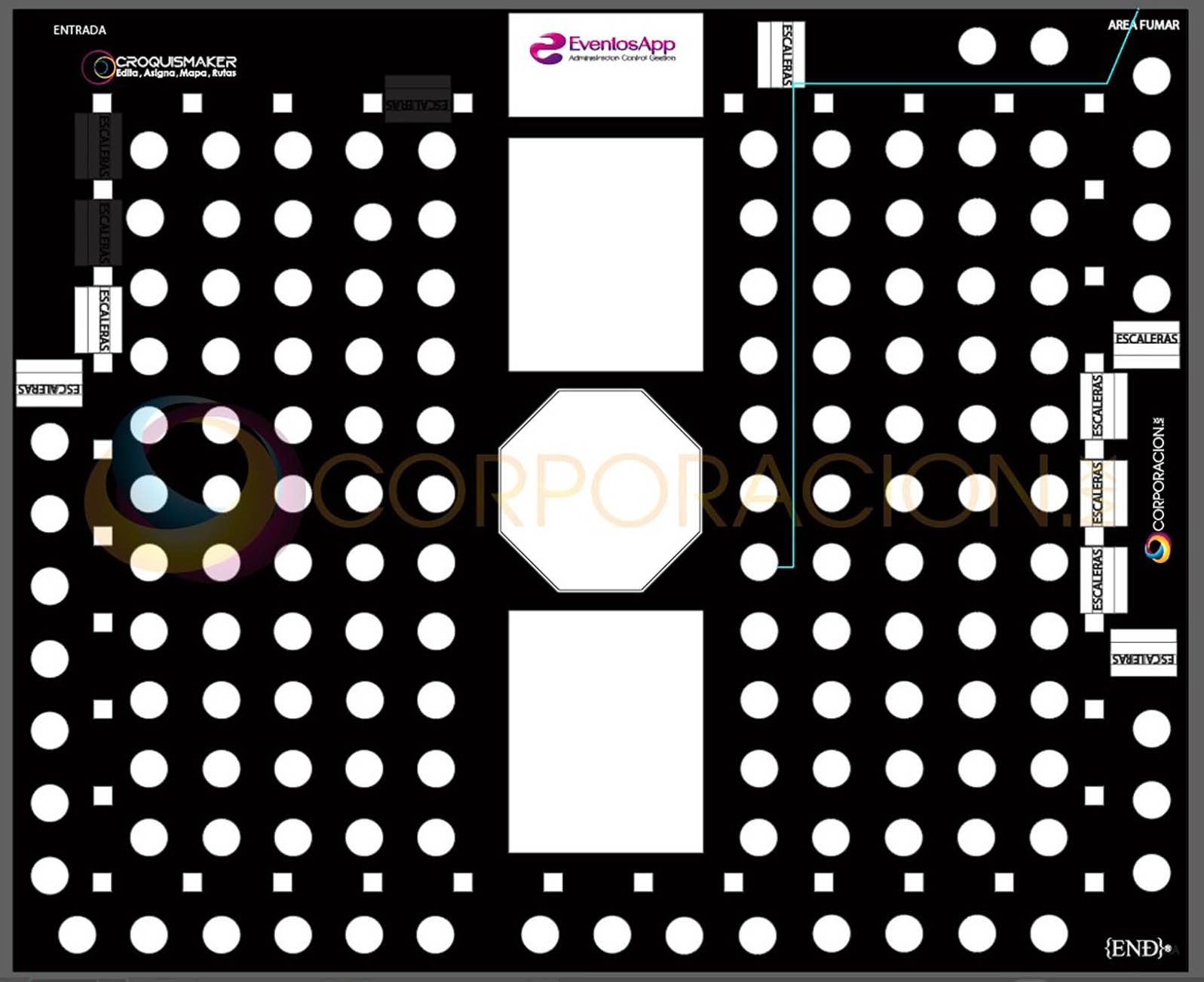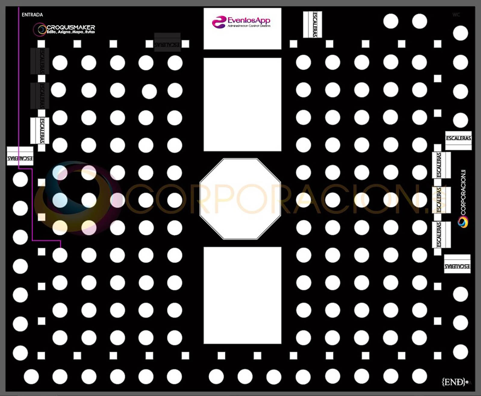 Croquis Maker es un modulo de EventosApp, que integra una interface intituitiva, sensilla de aprdender y usar, para que puedas asignasr invitados a tus mesas, edita la posision de cada montaje como si estuvieras en PowerPoint (Microsoft), Asigna Montajes acada mesa, Edita la configuracion de visualizacion de nuestra interface para personalizar cualquier croquis